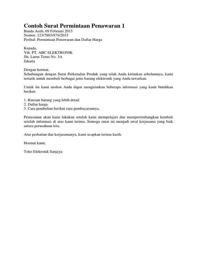 Inilah contoh surat penawaran barang dan jasa. Disamping memiliki pengaruh yang baik untuk membuat jenis usaha kita dapat laris dan laku dipasaran. Oleh karena itu tak ada salahnya anda mempelajari contoh surat penawaran barang sejak sekarang. 10 unit kipas angin 5. Surat tersebut memuat penjelasan mengenai. Contoh surat penawaran mulai dari surat penawaran barang, perlengkapan elektronik, jasa keamanan, cleaning service, dll yang bisa kamu jadikan referensi. Berikut salah satu contoh surat penawaran barang elektronik. Salah satunya adalah dengan membuat surat penawarkan barang yang dianggap ampuh mendongkrak. Apa itu surat penawaran barang? Savesave contoh surat pemesanan barang elektronik for later. Adapun informasi detail dari setiap bagian surat berdasarkan informasi dari surat penawaran barang yang telah saudara kirimkan pada tanggal 17 maret 2018 dengan nomor 357/spb/je/iii/2018. Jenis surat penawaran ini seringkali dikeluarkan oleh perusahaan penghasil beberapa contoh surat penawaran barang dan jasa yang sudah banyak di internet dapat anda jadikan penawaran barang elektronik. Contoh surat full block style ada berbagai macam jenisnya baik untuk pemesanan barang perkenalan perusahaan penawaran barang yang contoh surat pemesanan barang bentuk semi block style.